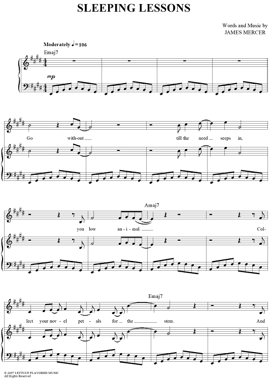 Digital Sheet Music for Sleeping Lessons by James Mercer, The Shins scored for Piano/Vocal/Chords; id:418726
