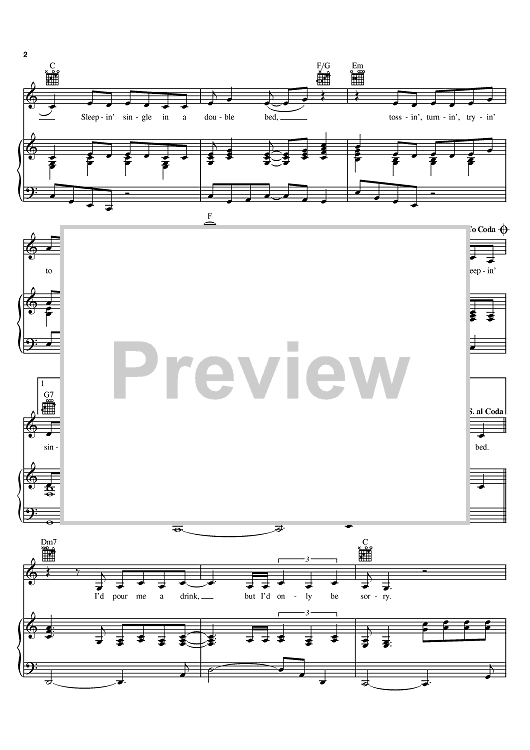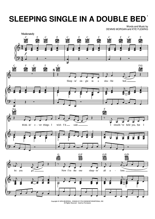 Digital Sheet Music for Sleeping Single In A Double Bed by Barbara Mandrell, Kye Fleming, Dennis Morgan scored for Piano/Vocal/Chords; id:388163