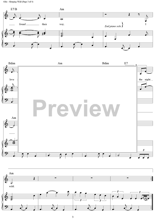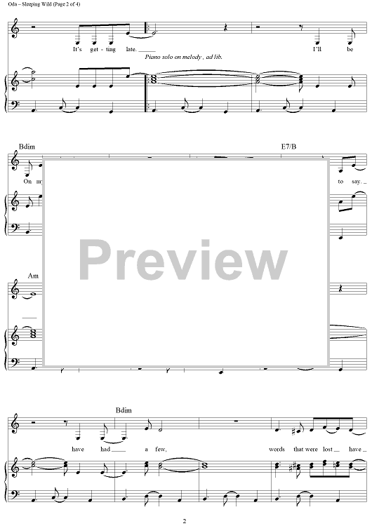 Digital Sheet Music for Sleeping Wild by Norah Jones, Sarah Oda scored for Piano/Vocal/Chords; id:465443