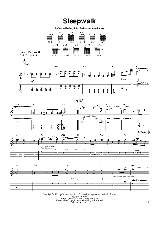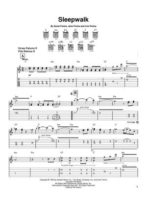 Digital Sheet Music for Sleepwalk by Jeff Beck, Ann Farina, John Farina, Santo Farina, Santo & Johnny scored for Easy Guitar Tab; id:371231
