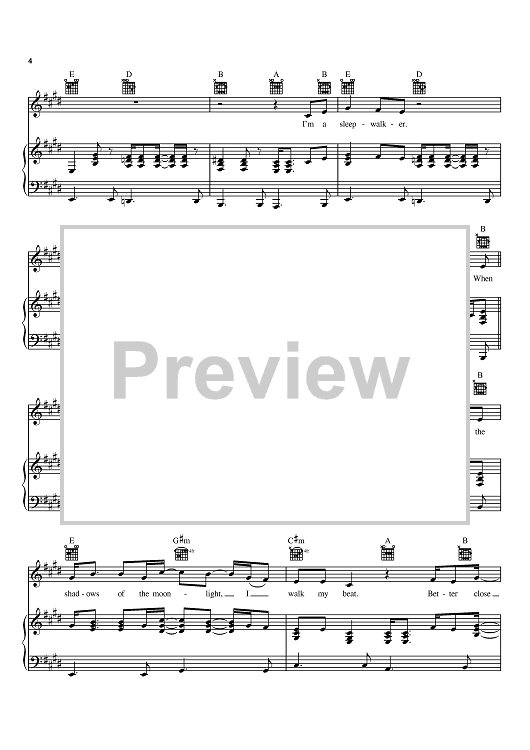 Digital Sheet Music for Sleepwalker by Ray Davies, The Kinks scored for Piano/Vocal/Chords; id:370501