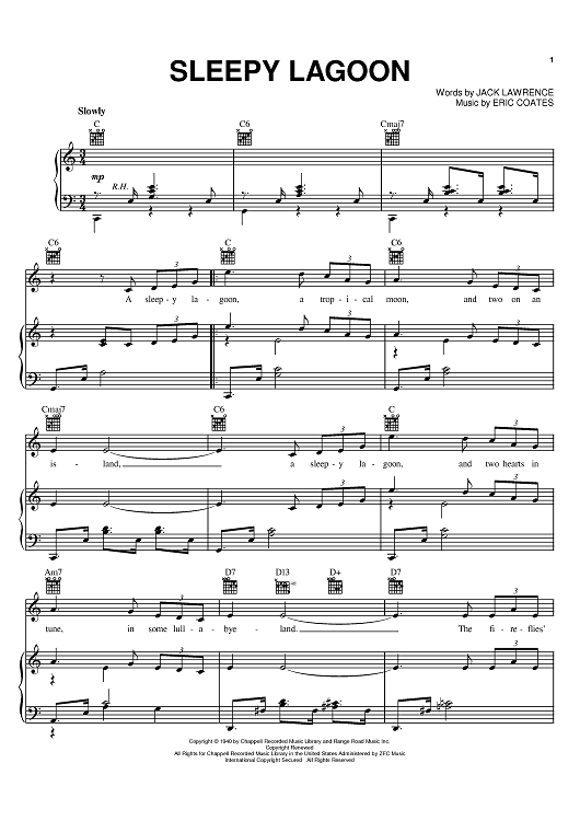 Digital Sheet Music for Sleepy Lagoon by Dinah Shore, Jack Lawrence, The Platters, Eric Coates, Harry James scored for Piano/Vocal/Chords; id:387225