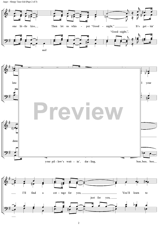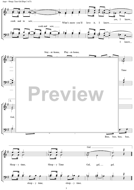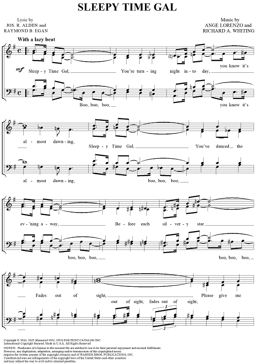 Digital Sheet Music for Sleepy Time Gal by Richard A. Whiting, Raymond B. Egan, Ange Lorenzo, Joseph R. Alden scored for Barbershop Quartet; id:250982