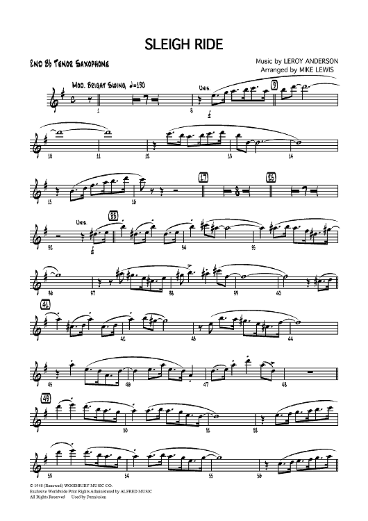 Digital Sheet Music for Sleigh Ride - B-flat Tenor Saxophone 2 by Leroy Anderson, Mike Lewis scored for Jazz Ensemble; id:358623