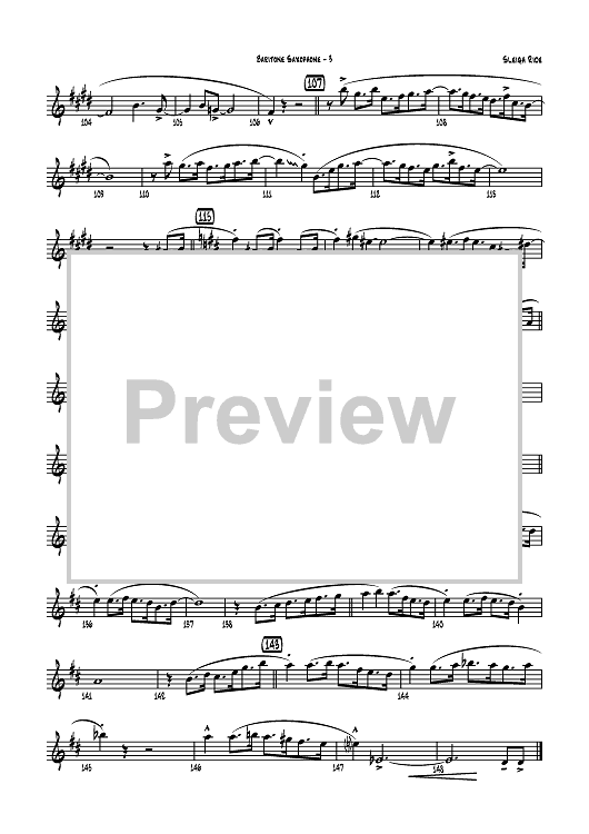 Digital Sheet Music for Sleigh Ride - E-flat Baritone Saxophone by Leroy Anderson, Mike Lewis scored for Jazz Ensemble; id:358624
