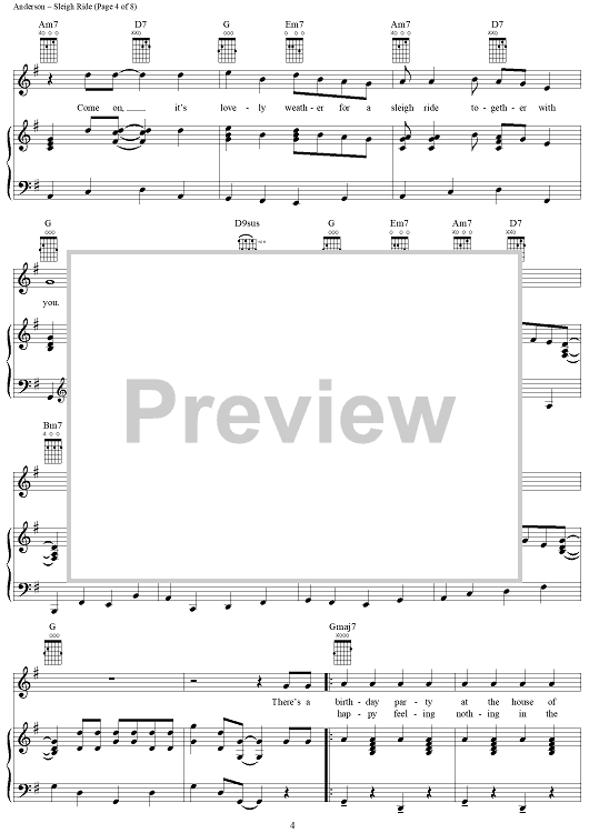 Digital Sheet Music for Sleigh Ride by Mitchell Parish, Garth Brooks, Leroy Anderson scored for Piano/Vocal/Chords; id:293287