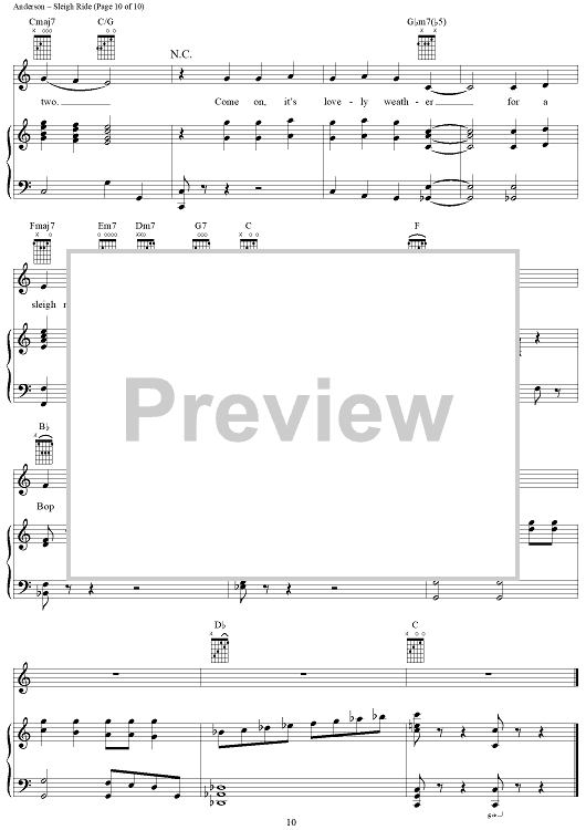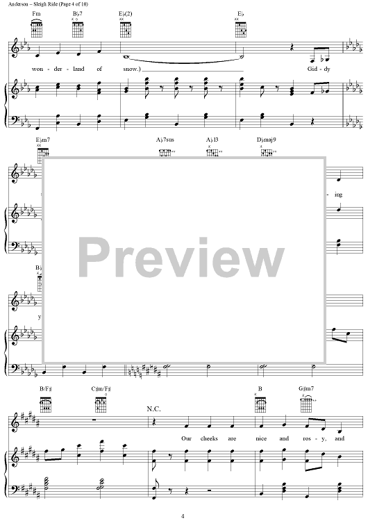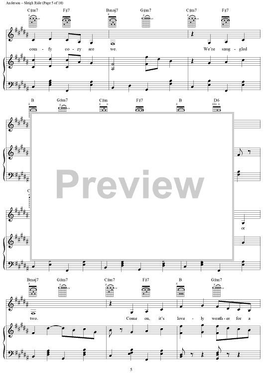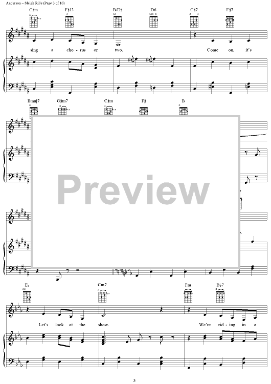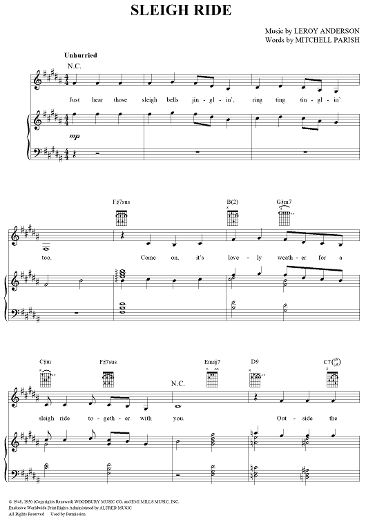 Digital Sheet Music for Sleigh Ride by Mitchell Parish, The Carpenters, Leroy Anderson scored for Piano/Vocal/Chords; id:371410