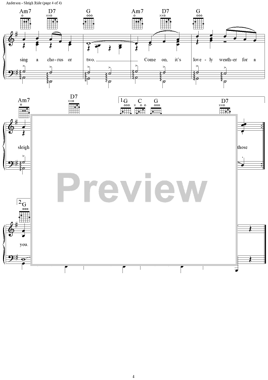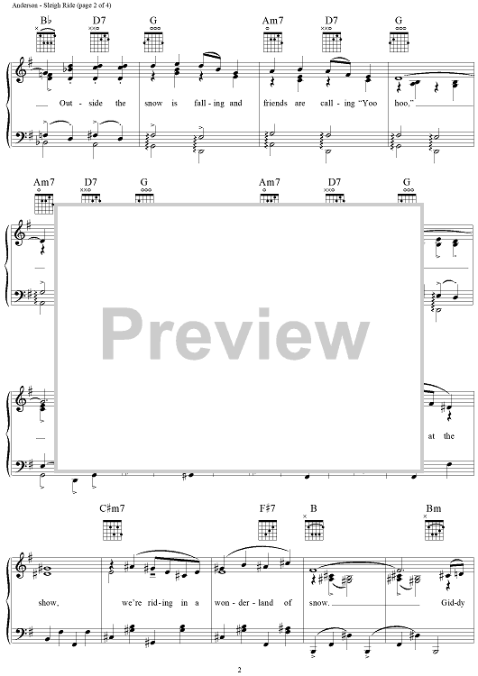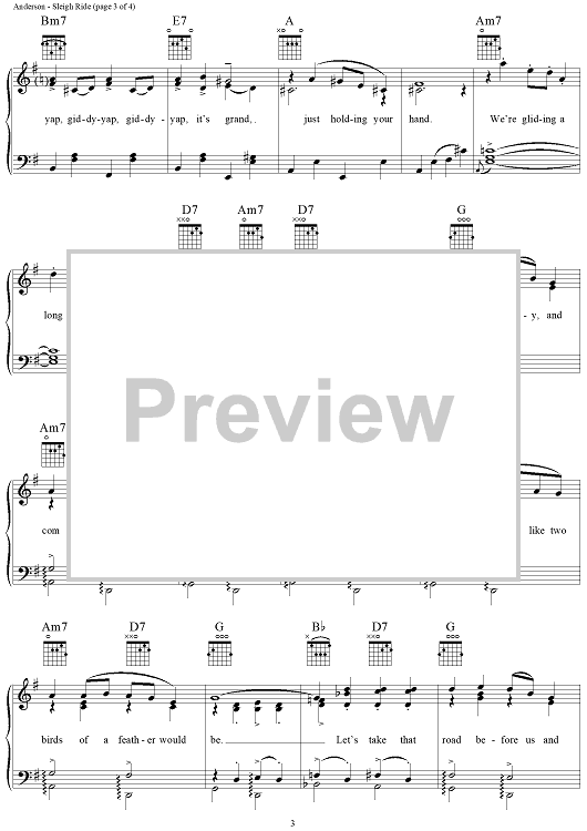 Digital Sheet Music for Sleigh Ride by Mitchell Parish, Leroy Anderson scored for Piano/Vocal/Chords; id:95223