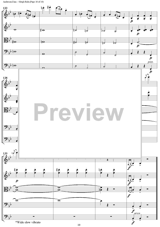 Digital Sheet Music for Sleigh Ride - Score by Leroy Anderson, William Zinn scored for String Ensemble; id:433256
