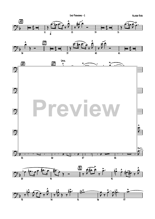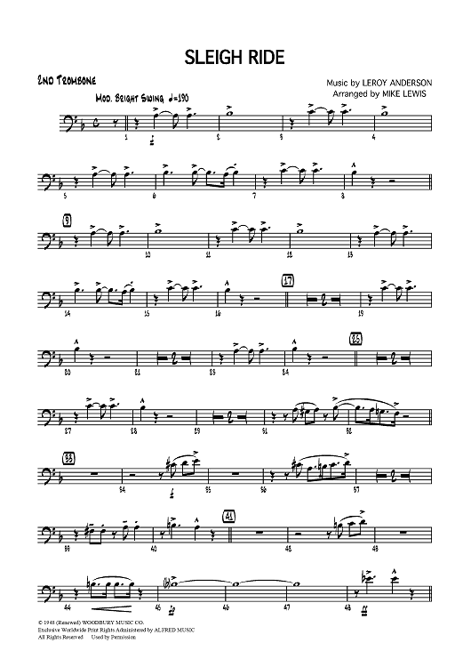 Digital Sheet Music for Sleigh Ride - Trombone 2 by Leroy Anderson, Mike Lewis scored for Jazz Ensemble; id:358630