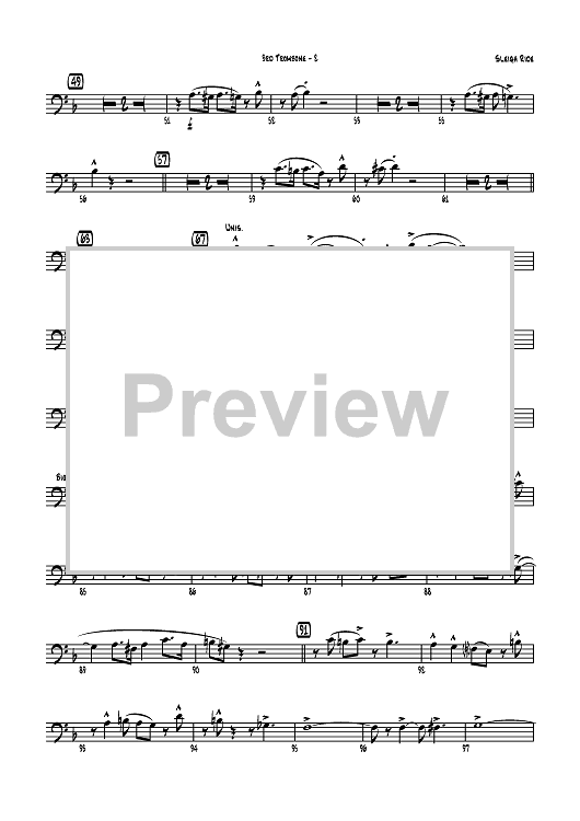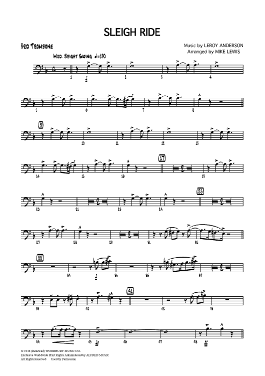 Digital Sheet Music for Sleigh Ride - Trombone 3 by Leroy Anderson, Mike Lewis scored for Jazz Ensemble; id:358631