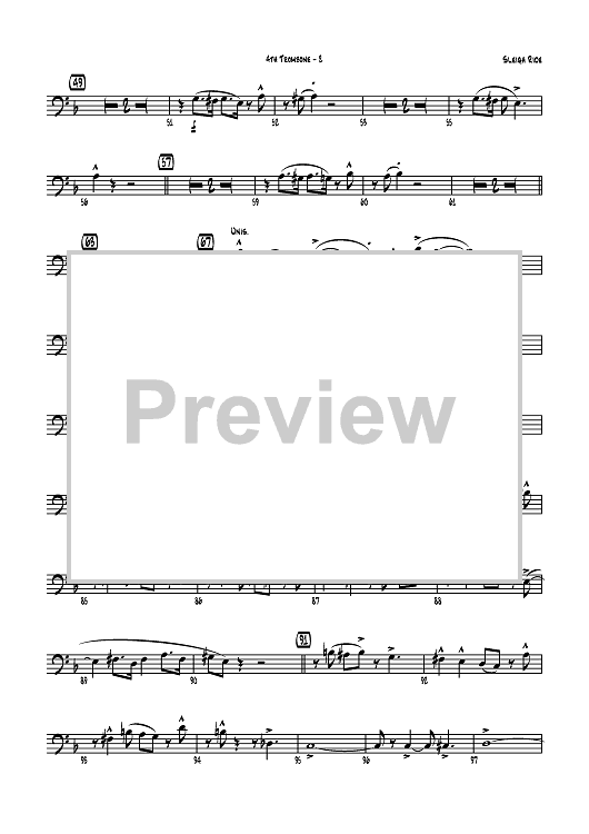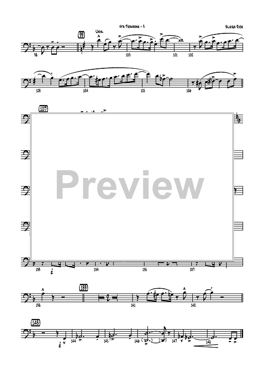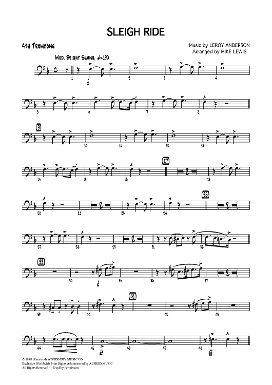 Digital Sheet Music for Sleigh Ride - Trombone 4 by Leroy Anderson, Mike Lewis scored for Jazz Ensemble; id:358632