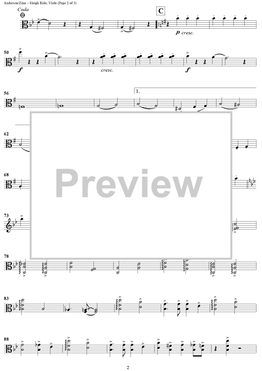 "Sleigh Ride - Viola" Sheet Music by Leroy Anderson
