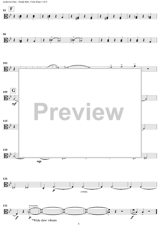 Digital Sheet Music for Sleigh Ride - Viola by Leroy Anderson, William Zinn scored for String Ensemble; id:433259