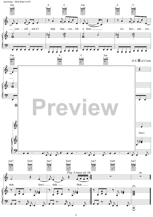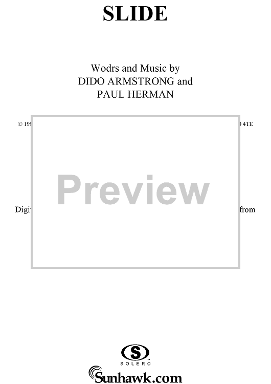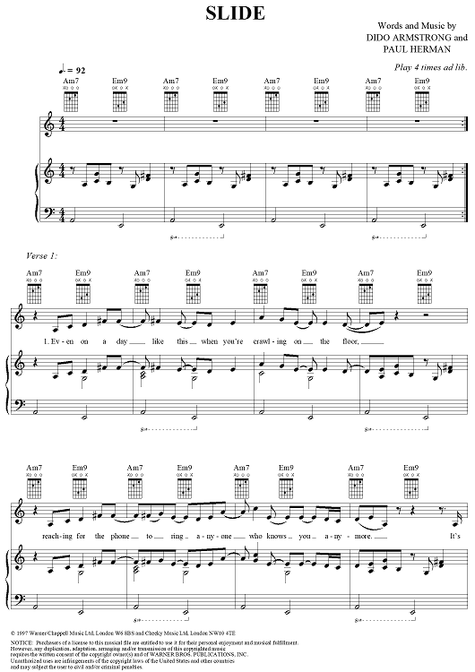 Digital Sheet Music for Slide by Dido Armstrong, Paul Herman, Dido scored for Piano/Vocal/Chords; id:285329