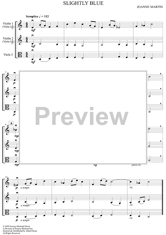 Digital Sheet Music for Slightly Blue by Joanne Martin scored for Viola and violin ensemble; id:498035