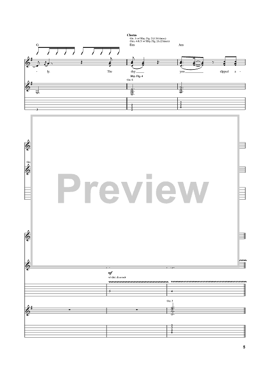 Digital Sheet Music for Slipped Away by Avril Lavigne, Chantal Kreviazuk scored for Guitar Tab; id:379543