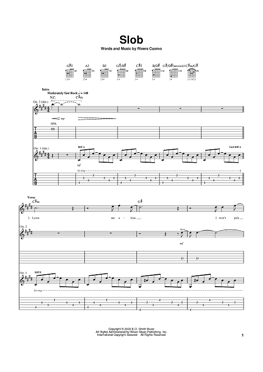Digital Sheet Music for Slob by Rivers Cuomo, Weezer scored for Guitar Tab; id:369942