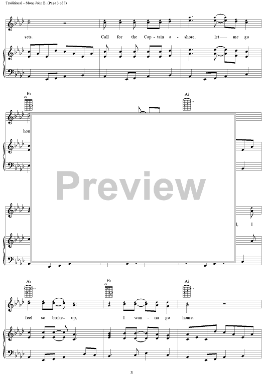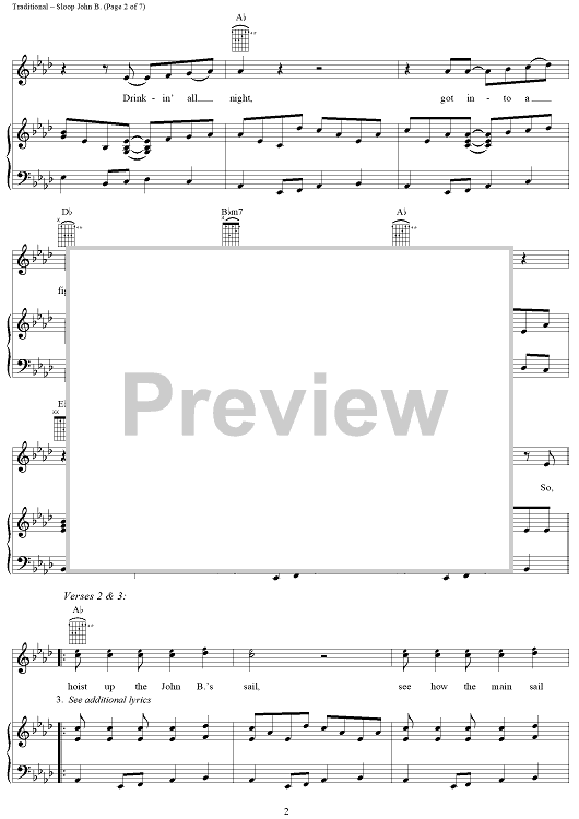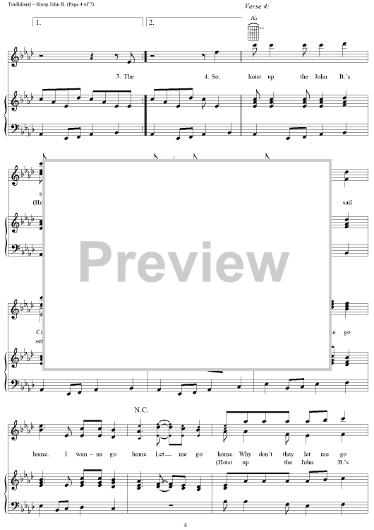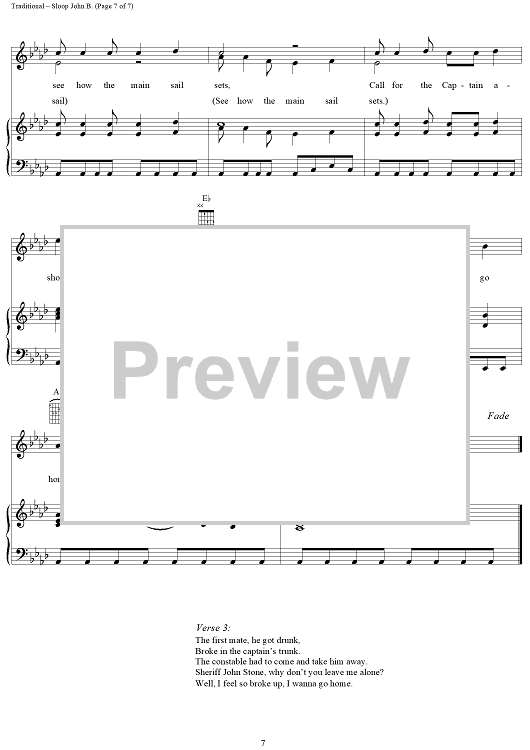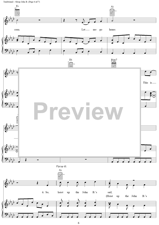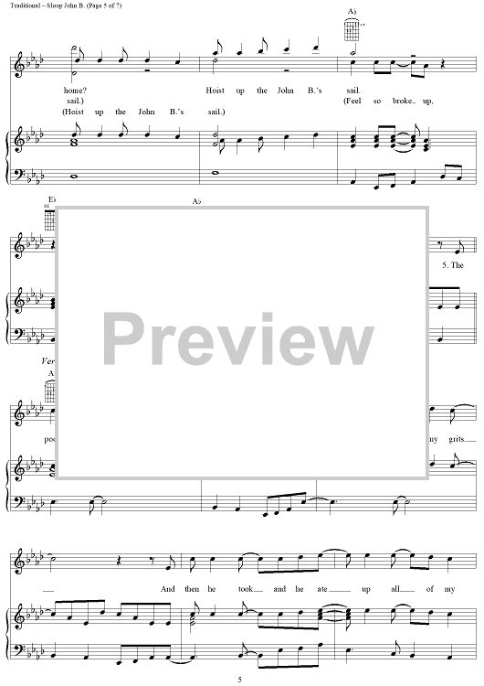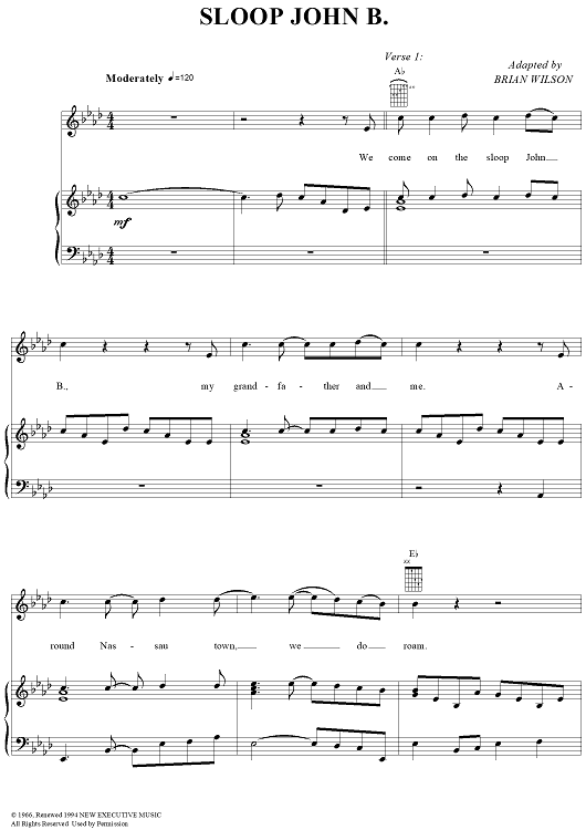 Digital Sheet Music for Sloop John B. by Brian Wilson, The Beach Boys, Traditional scored for Piano/Vocal/Chords; id:112259
