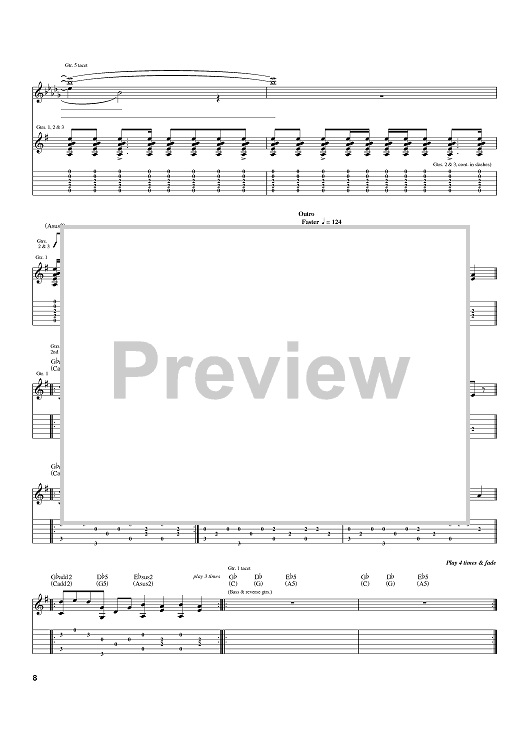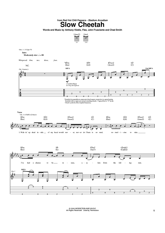 Digital Sheet Music for Slow Cheetah by Flea, John Frusciante, Anthony Kiedis, Red Hot Chili Peppers, Chad Smith scored for Guitar Tab; id:391505