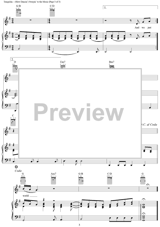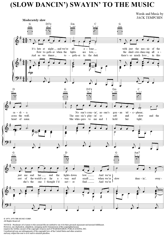 Digital Sheet Music for (Slow Dancin') Swayin' to the Music by Jack Tempchin, Johnny Rivers scored for Piano/Vocal/Chords; id:288262