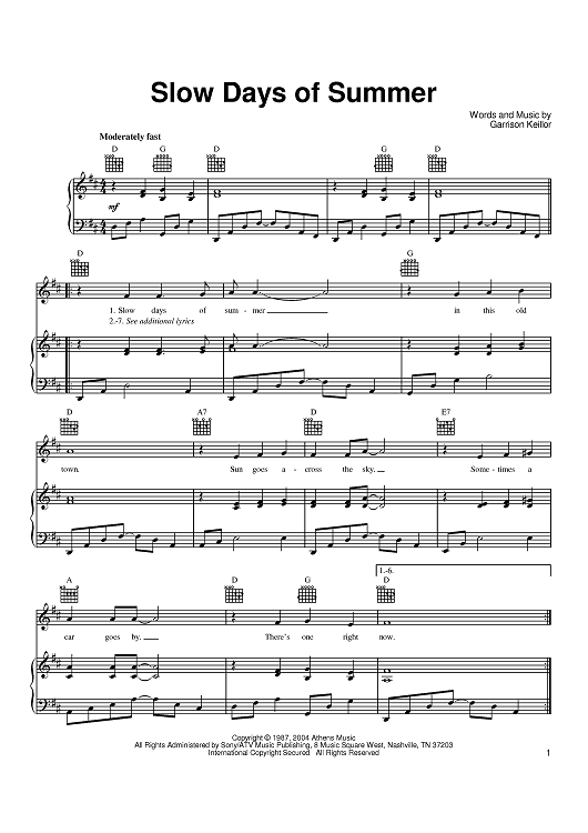 Digital Sheet Music for Slow Days Of Summer by Garrison Keillor scored for Piano/Vocal/Chords; id:381435