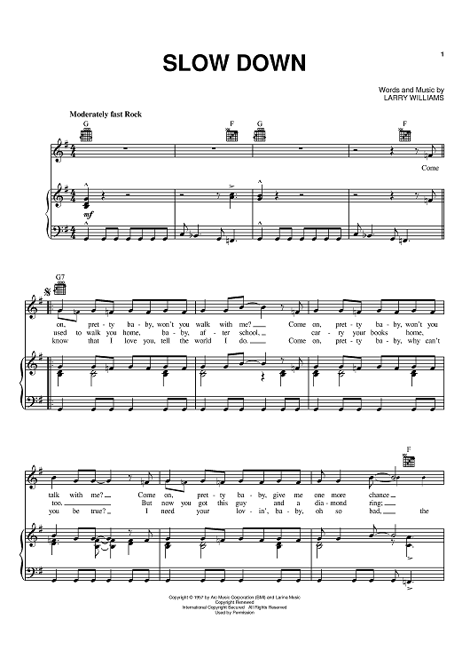 Digital Sheet Music for Slow Down by The Beatles, Larry Williams scored for Piano/Vocal/Chords; id:373247
