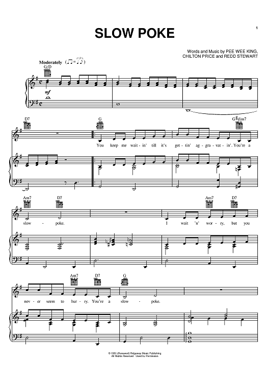 Digital Sheet Music for Slow Poke by Redd Stewart, Pee Wee King, Chilton Price scored for Piano/Vocal/Chords; id:388263
