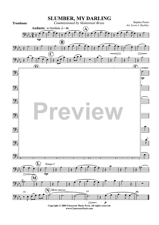 "Slumber, My Darling - Trombone" Sheet Music by Stephen Foster