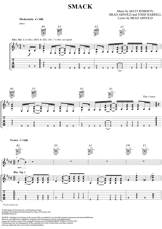 Digital Sheet Music for Smack by 3 Doors Down, Matt Roberts, Brad Arnold, Todd Harrell scored for Guitar Tab/Vocal; id:283931