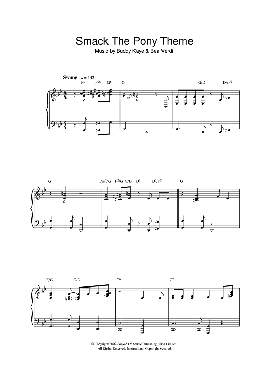 Digital Sheet Music for Smack The Pony Theme by Buddy Kaye, Bea Verdi scored for Piano; id:384557