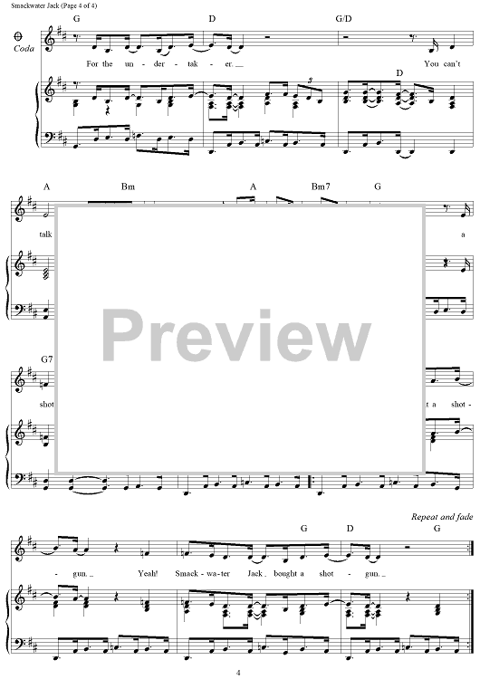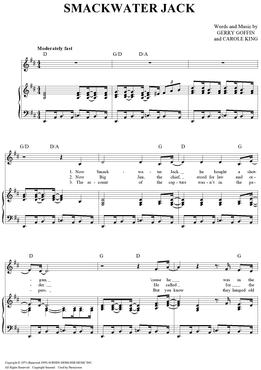 Digital Sheet Music for Smackwater Jack by Carole King, Gerry Goffin scored for Piano/Vocal/Chords; id:470846