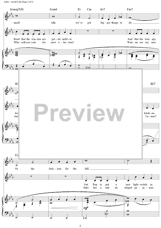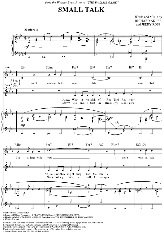 Digital Sheet Music for Small Talk by Jerry Ross, Richard Adler scored for Piano/Vocal/Chords; id:236546