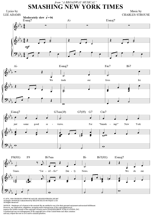 Digital Sheet Music for Smashing New York Times by Charles Strouse, Lee Adams scored for Piano/Vocal/Chords; id:259267