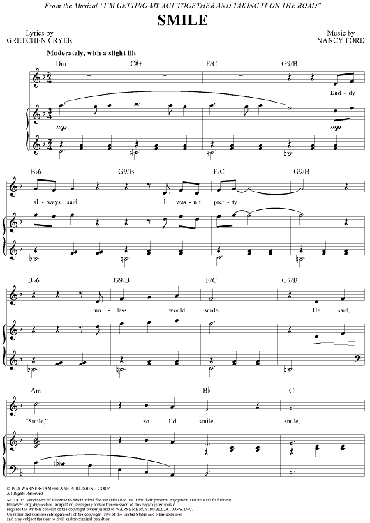 Digital Sheet Music for Smile by Nancy Ford, Gretchen Cryer scored for Piano/Vocal/Chords; id:234525
