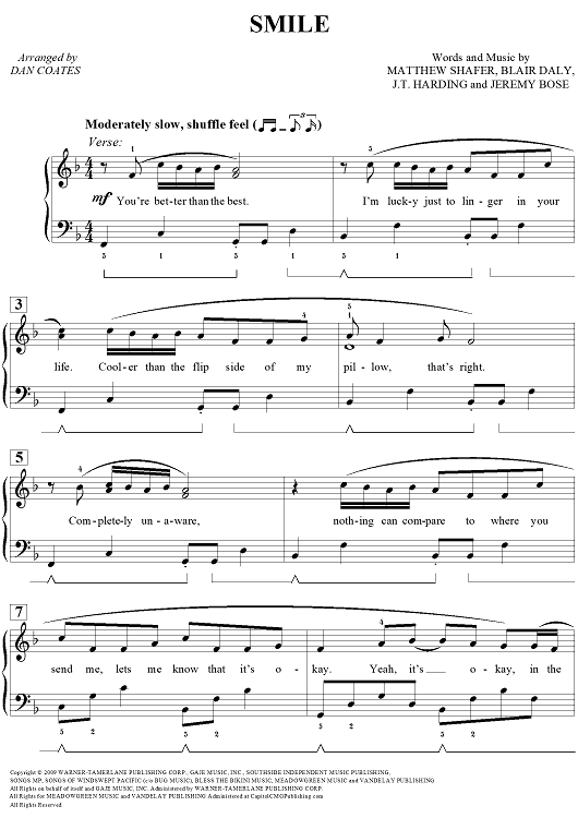 Digital Sheet Music for Smile by Dan Coates, Matthew Shafer, Blair Daly, J.T. Harding, Jeremy Bose scored for Piano; id:460311