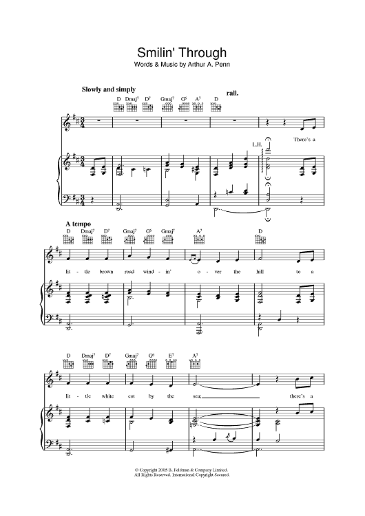 Digital Sheet Music for Smilin' Through by Arthur A. Penn scored for Piano/Vocal/Chords; id:392756