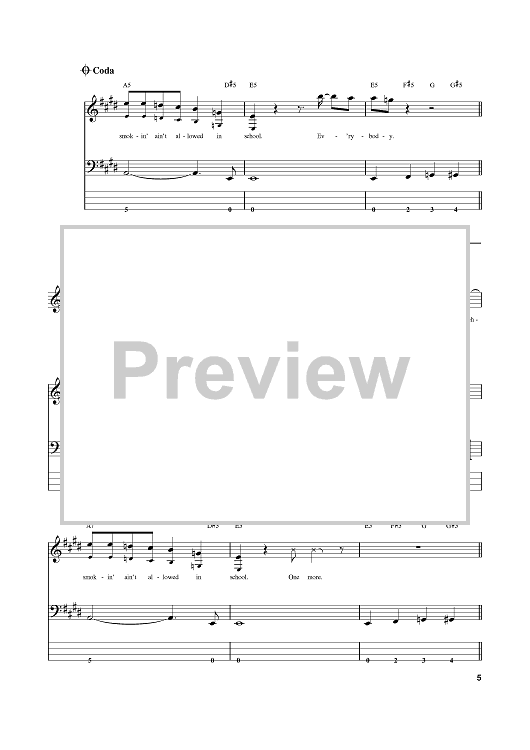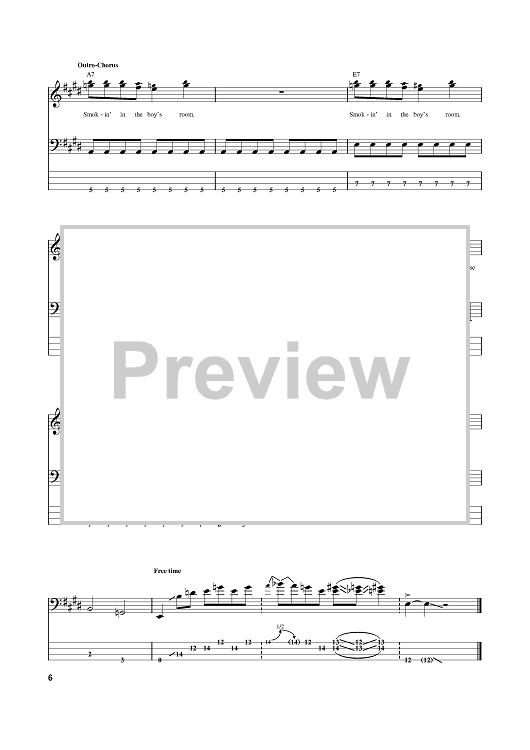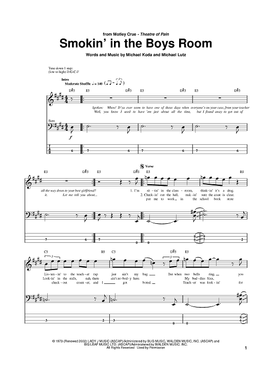Digital Sheet Music for Smokin' In The Boys Room by Mötley Crüe, Michael Lutz, Brownsville Station, Michael Koda scored for Bass Tab; id:382338