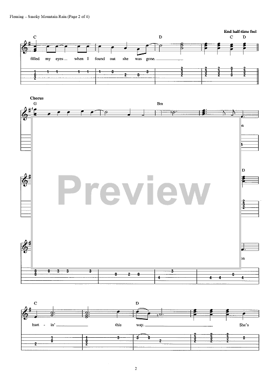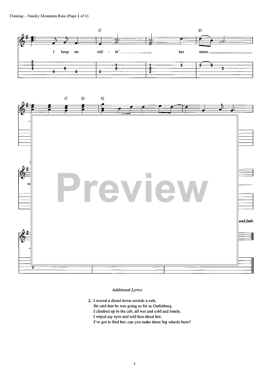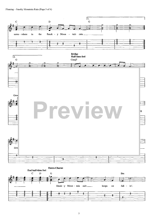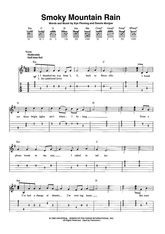 Digital Sheet Music for Smoky Mountain Rain by Ronnie Milsap, Kye Fleming, Dennis Morgan scored for Easy Guitar Tab/Vocal; id:441864