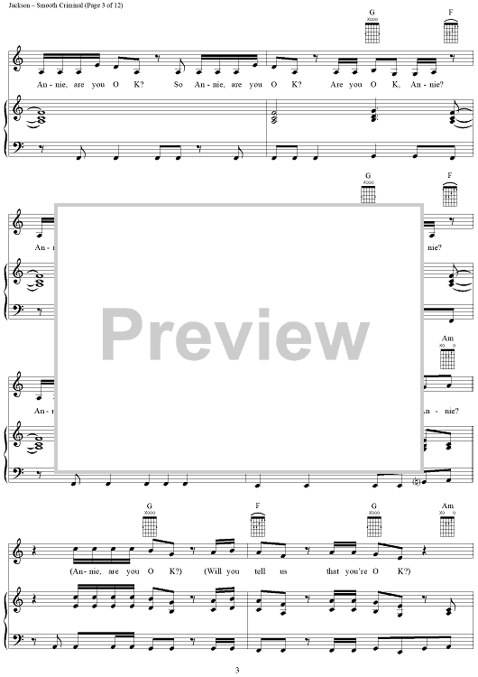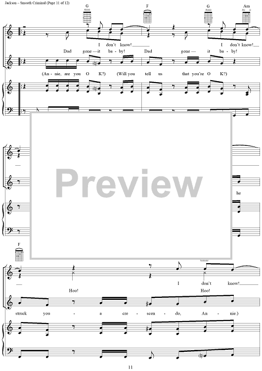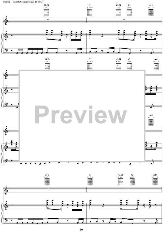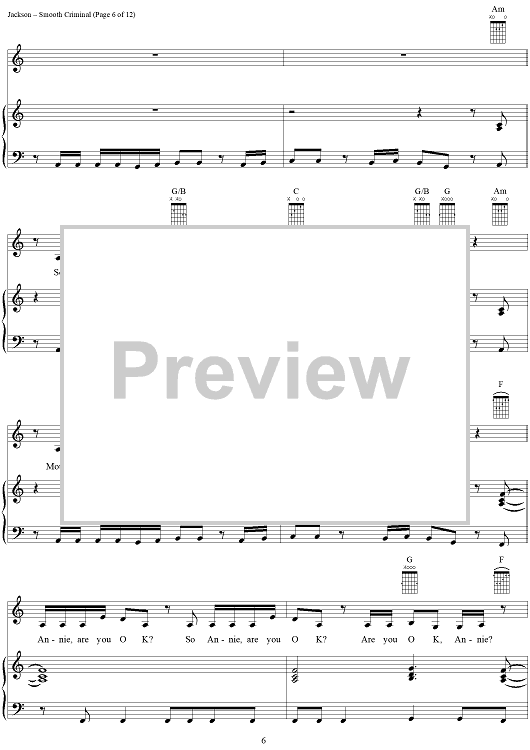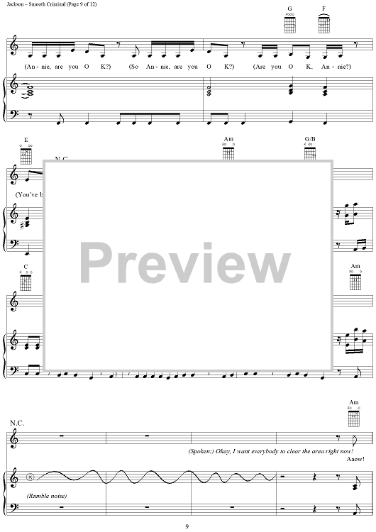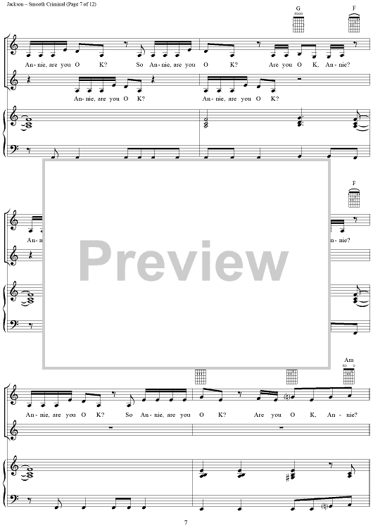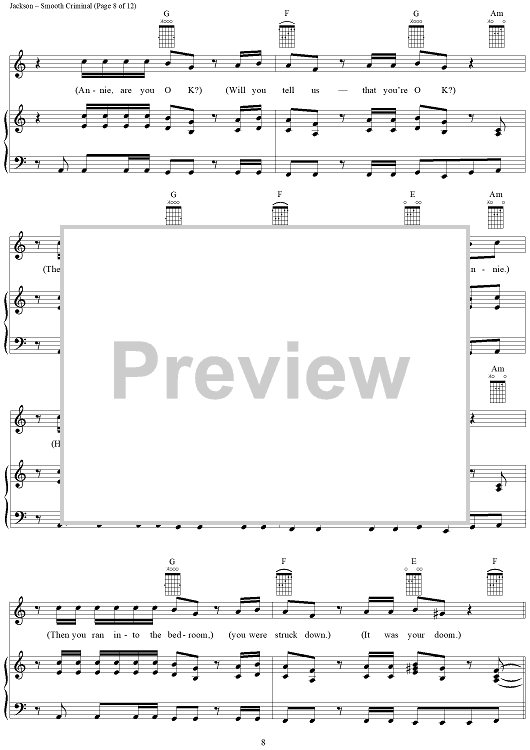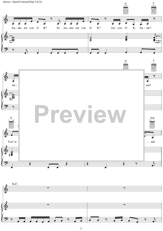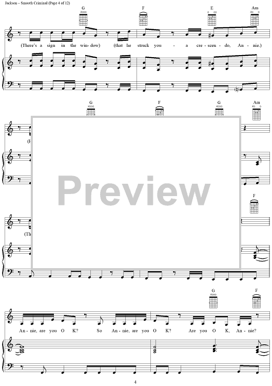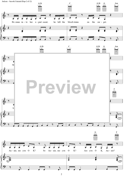 Digital Sheet Music for Smooth Criminal by Michael Jackson scored for Piano/Vocal/Chords; id:265346