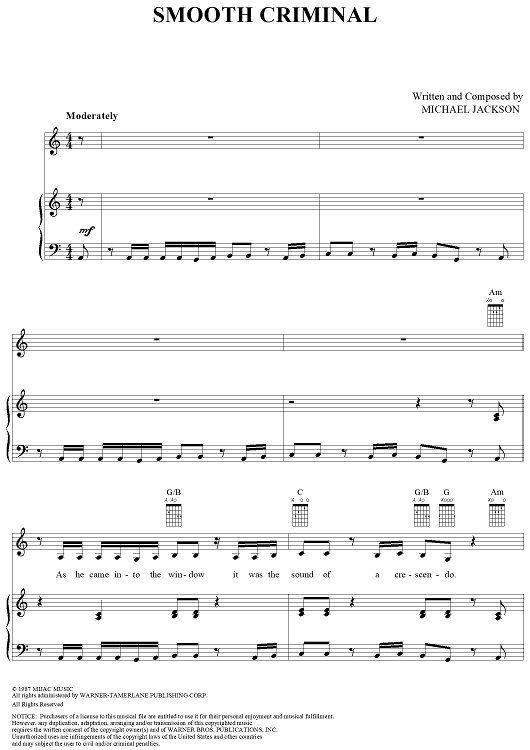 "Smooth Criminal" Sheet Music by Michael Jackson