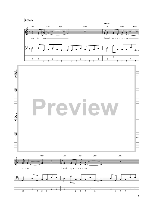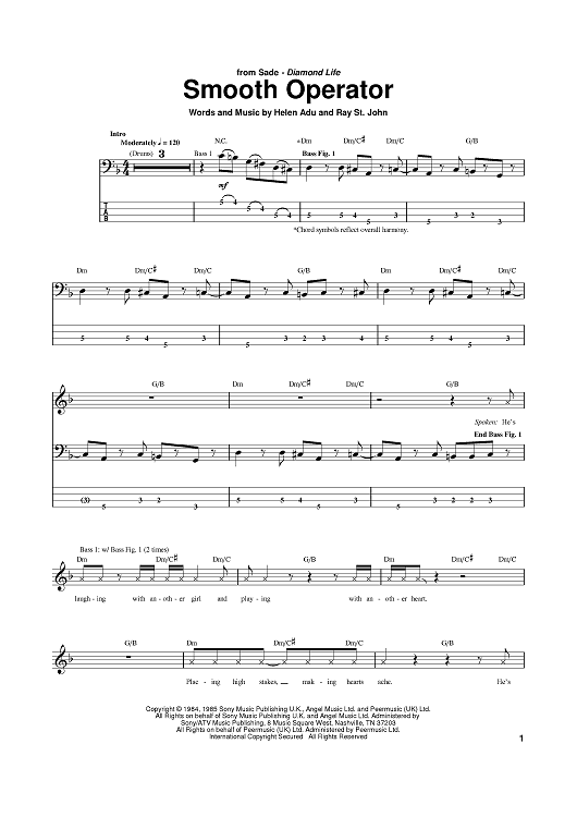 Digital Sheet Music for Smooth Operator by Sade Adu, Ray St. John, Sade scored for Bass Tab; id:383065