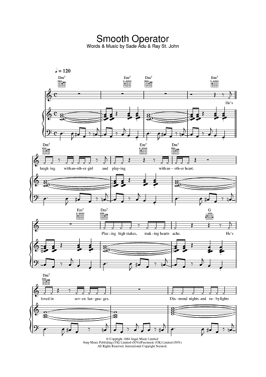 Digital Sheet Music for Smooth Operator by Sade Adu, Ray St. John, Sade scored for Piano/Vocal/Chords; id:388764