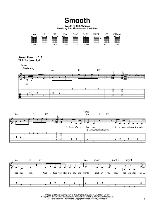Digital Sheet Music for Smooth by Itaal Shur, Rob Thomas, Santana scored for Easy Guitar Tab; id:387939
