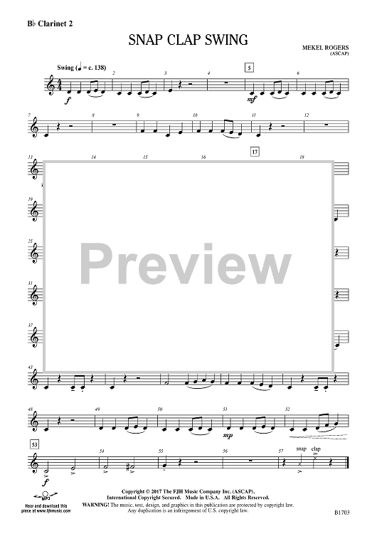 "Snap Clap Swing - Bb Clarinet 2" Sheet Music by Mekel Rogers