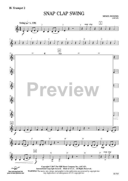 "Snap Clap Swing - Bb Trumpet 2" Sheet Music by Mekel Rogers