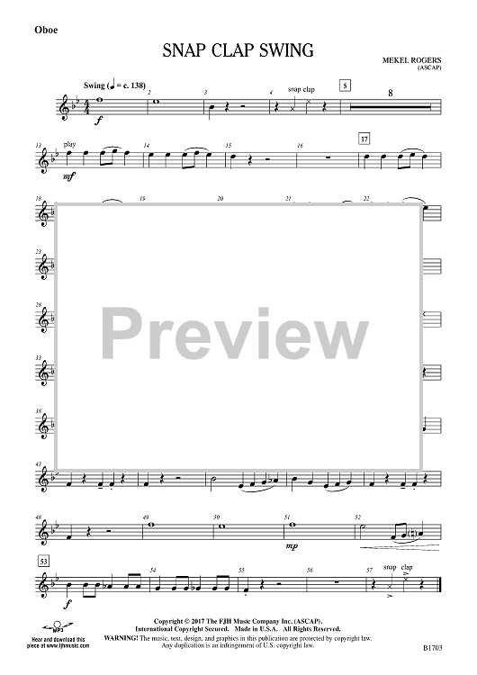 "Snap Clap Swing - Oboe" Sheet Music by Mekel Rogers
