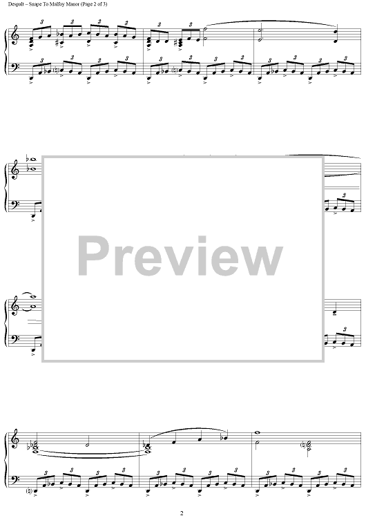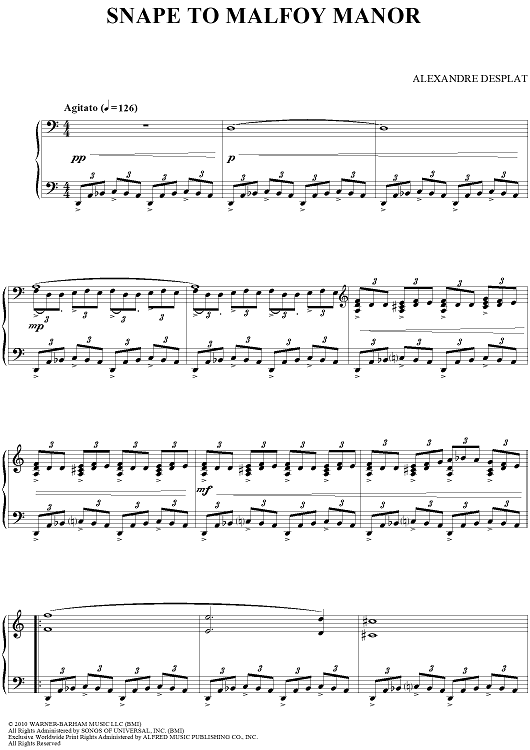 Digital Sheet Music for Snape To Malfoy Manor by Alexandre Desplat scored for Piano Solo; id:418346