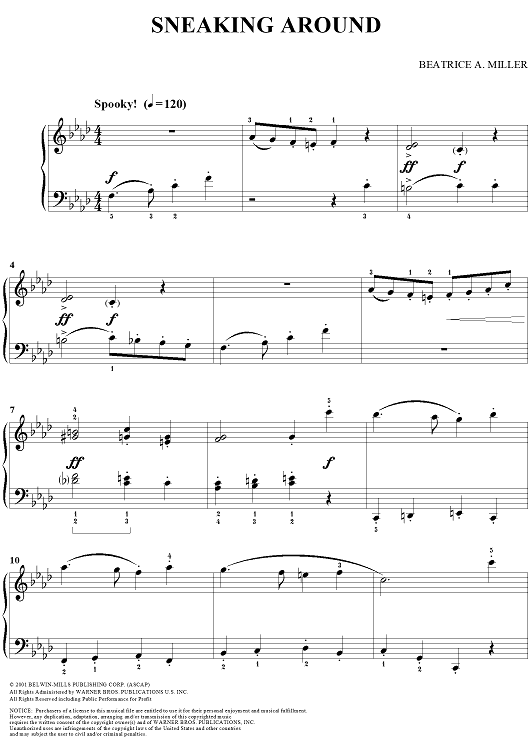 Digital Sheet Music for Sneaking Around by Beatrice A. Miller scored for Piano Solo; id:292737