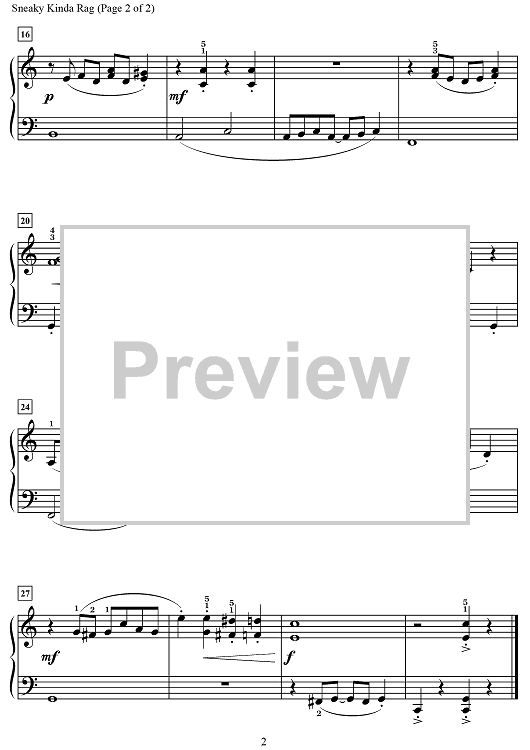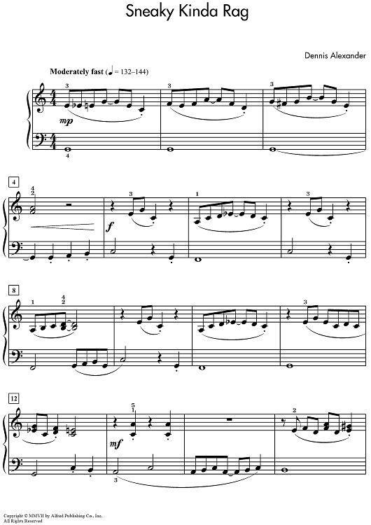 Digital Sheet Music for Sneaky Kinda Rag by Dennis Alexander scored for Piano Solo; id:469105